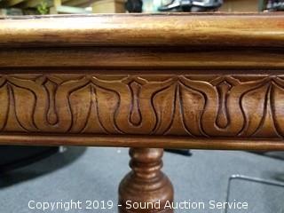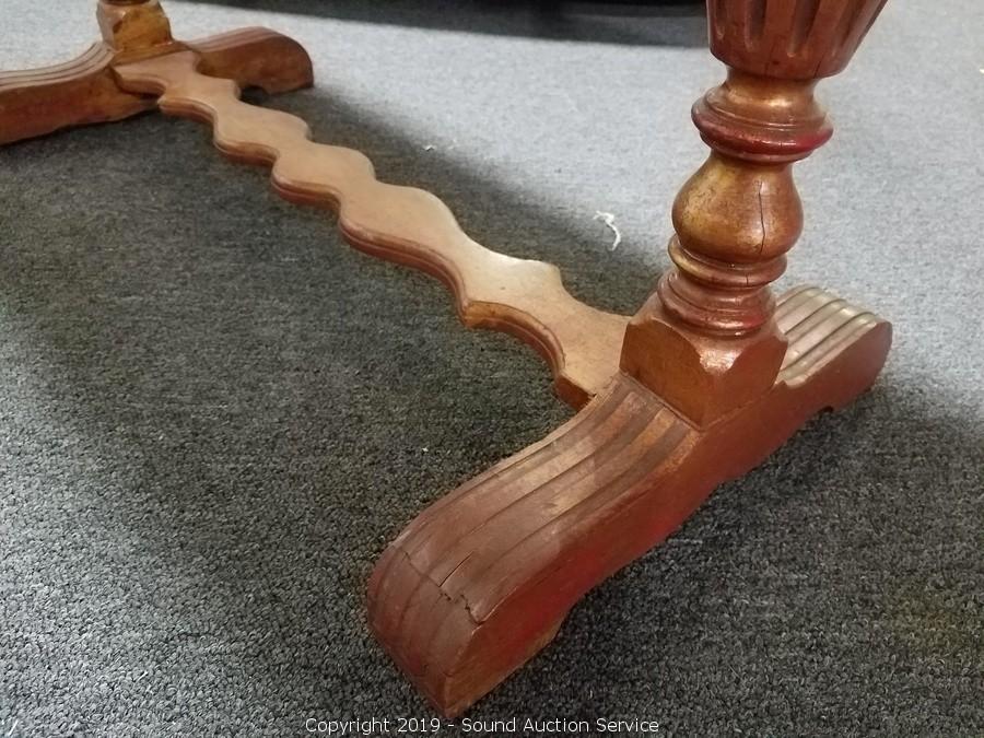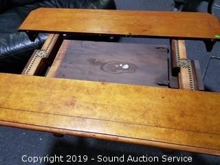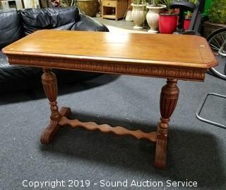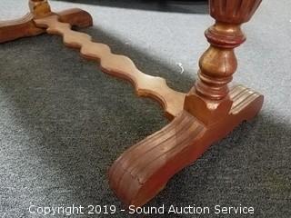 Item Description: Has a hidden butterfly leaf. the gears work well. Approx. 31" H x 48 x 20" to 32" with leaf. The table is wobbly, unstable.
