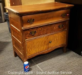 Item Description: Approx. 30" T x 33" W x 18" D. Has 2 drawers and a lower cabinet.