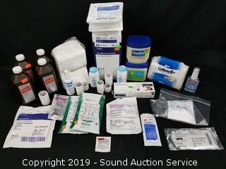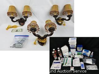 Item Description: Health Care & First Aid Products and 3 Bronze Finish Dual Wall Sconce Lamps.