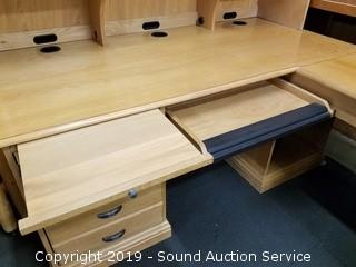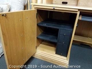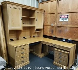 Lot #0018: Beautiful Lexington Oak Corner Desk w/Cabinet