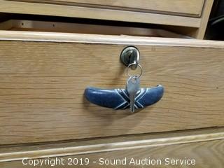 Item Description: In excellent condition. Comes apart in 3 pieces for travel. Approx. 81" H x 66" & 79" W x 32" & 20" D. Also comes with file / desk accessory rolling cabinet. Locking with key however the lock is damaged and not functioning properly. Approx. 23' H x 21" x 20".