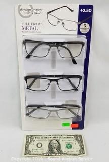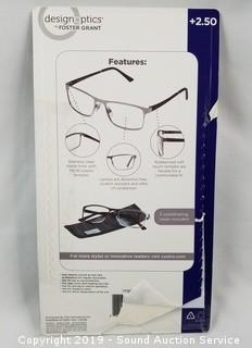 Lot #0341: Design Optics +2.5 Full Metal Reading Glasses