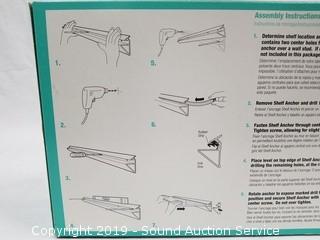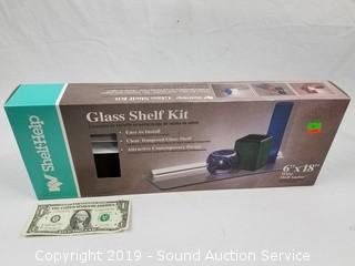 Item Description: 6" x 18". Clear tempered glass, white shelf anchors. Appears to be new in box.