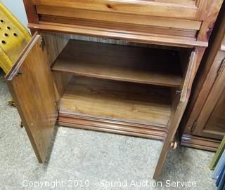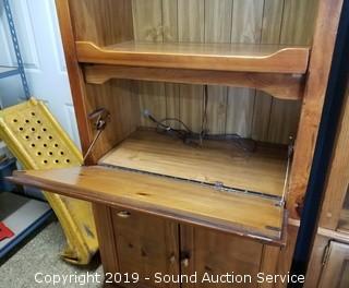 Lot #0176: Lighted Pine Media Cabinet Hutch