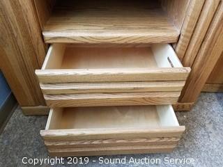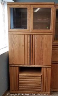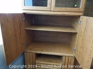 Lot #0200: Oak Lighted Media Cabinet w/ Hutch