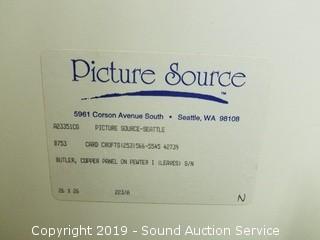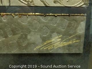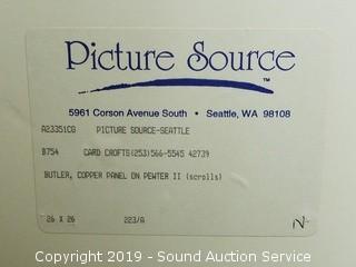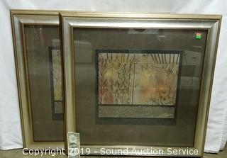 Item Description: Both are 26" x 26". By 'Butler' Copper Panel on Pewter I titled "Leaves". and Copper Panel on Pewter II titled "Scrolls". Signed and numbered 58/375 and 44/375.
