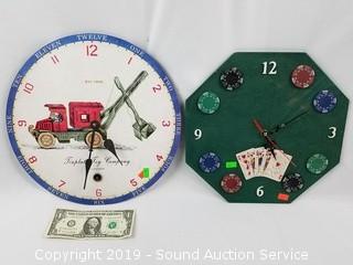 Lot #0343: Poker & Tin Plate Toy Company Wall Clocks