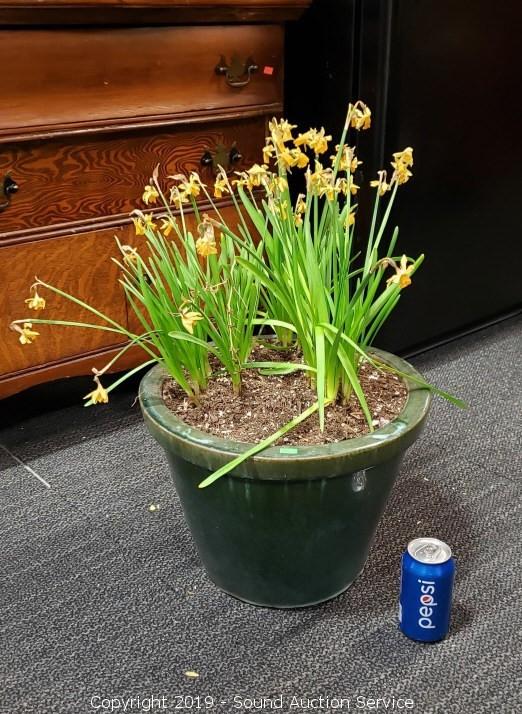 Lot #0253: Pottery Planter w/ Miniature Daffodils