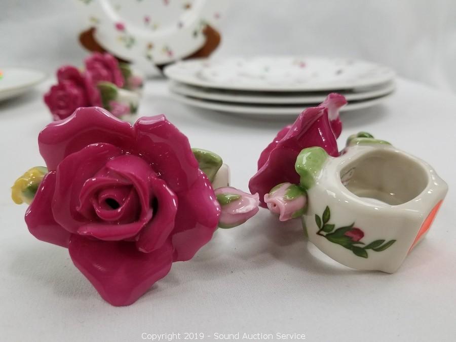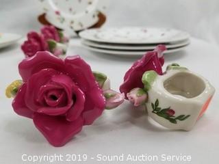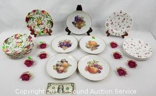 Item Description: Includes 8 napkin rings, 4 Country Rosebud snack plates, 8 Country Rose Chintz plates and 5 Cuba Bavaria Germany fruit plates (one has a chip).