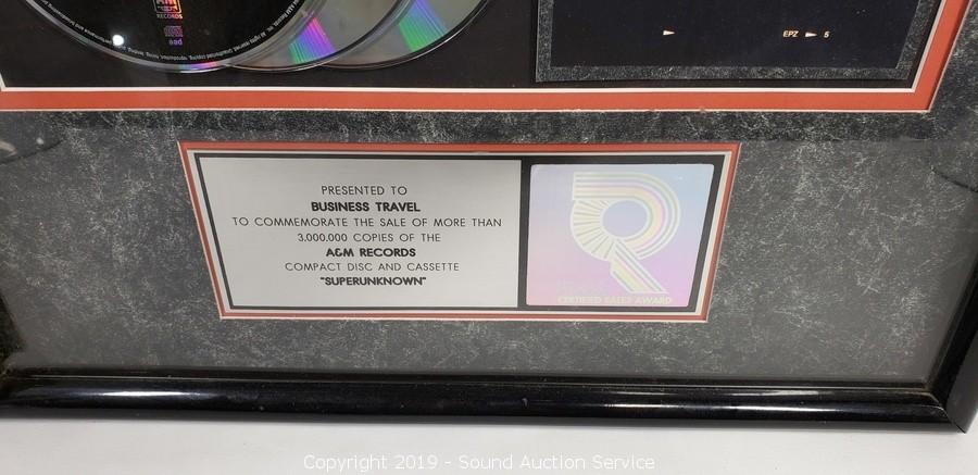 Lot #0307: Sound Garden RIAA Certified Sales Award Plaque