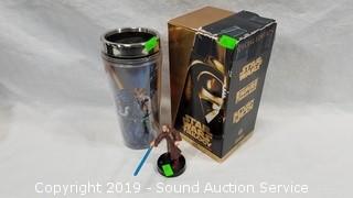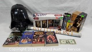 Item Description: Includes kids mask, 4 books, glass set, Obi-Wan Kenobi figure, poster and Star Wars trilogy VHS movies.