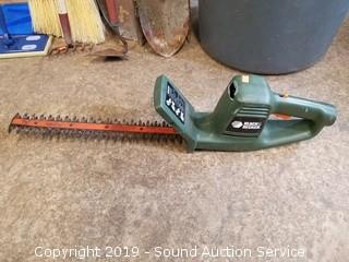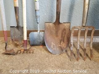 Item Description: Electric hedge trimmer, shovel, scraper, cultivator, potato fork and more.