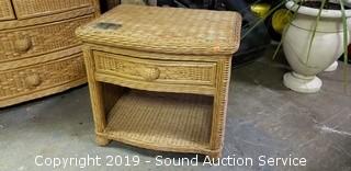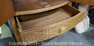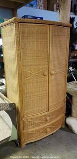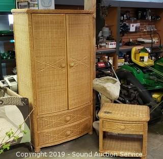 Lot #0131: Wicker Woven Armoire & Night Stand