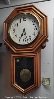 Lot #0029: Antique 8-Day New Haven Pendulum Wall Clock