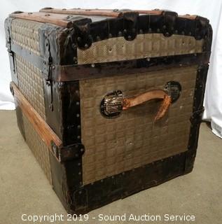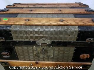 Lot #0025: Antique Oak Trim 1/2 Size Trunk