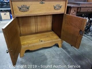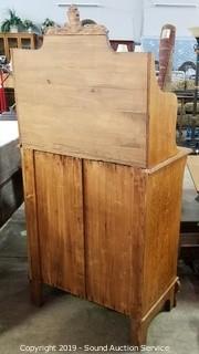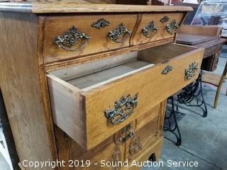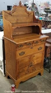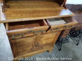 Item Description: A little different then most buffets. Ornately carved moldings & brass accent hardware. Skeleton key locks (no key), dovetail construction. Approx. 62" H x 31" x 19".