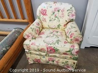 Lot #0016: Ethan Allen Floral Print Swivel Rocking Chair