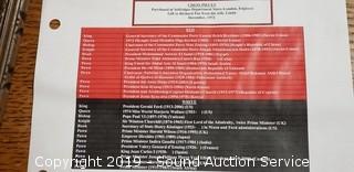Item Description: Purchased at Selfridges Department store London England in 1972. Refer to photos for full list of chess piece figures. Includes: "Kings" President Gerald Ford vs. General Secretary Lenoid Brezhnov, and 24 other pieces including Kissinger, Castro, Churchill, and Mao Zedong, Gandhi, and Ho Chi Minh. Condition: Red queen has repaired neck and some scratches on board, otherwise excellent. Approx. 4" to 6" H. 23.5" chess board.