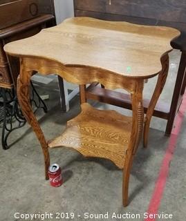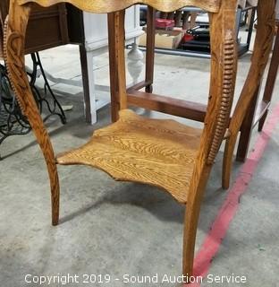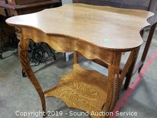 Lot #0033: Incredible Antique Oak Scalloped Edge 2-Tier Table