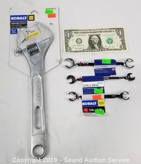 Lot #0171: Kobalt Open End Ratcheting & Adjustable Wrenches