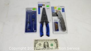 Item Description: All are NIP. You get 8.5" wire strippers, lock back quick change folding knife with 10 blades, and 2 piece pocket screwdriver set.