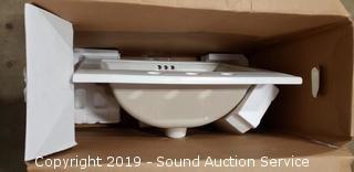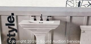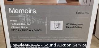 Item Description: Vitreous China. No pedestal, just the sink. Approx. 18" x 23". 3 hole. Like new in original box.