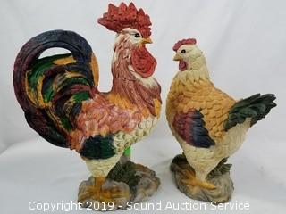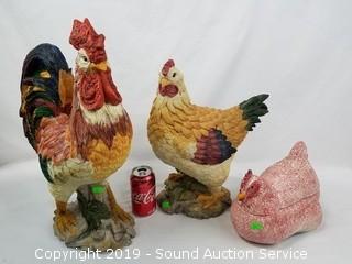 Lot #0176: Pair of Rooster & Hen Figures & Hen Soup Tureen