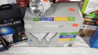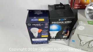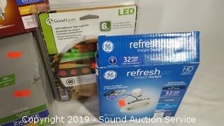 Item Description: Recessed light kits, smart bulb, flood lights, self-adhesive tape light kit (supposed to be multi-color, only the white works), white mailbox, and more.