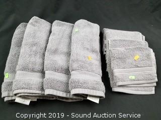 Item Description: Gray. Some loose threads and a couple snags, no other issues. 4 washcloths, 4 hand towels.