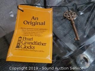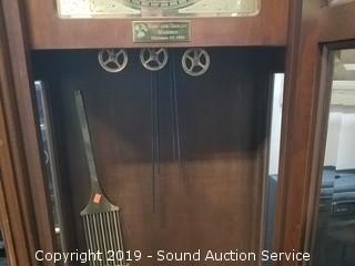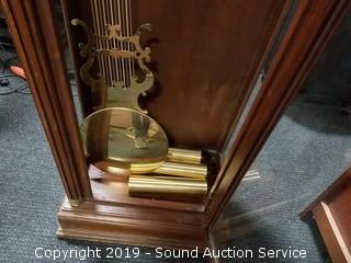 Item Description: 3 weight with pendulum ,locking with key. Missing the cables that the weights hang on. Otherwise appears to be in excellent condition. Approx. 79-1/2" H x 22" W x 12" D.