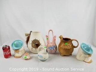 Item Description: Most look to be Mexican Pottery. One is Adobe Moon Pottery with dreamcatcher, has the original tag, handcrafted by Lenie. Approx. 2-1/2" to 10" H x 2-1/2" to 8" diameter. Some are signed.