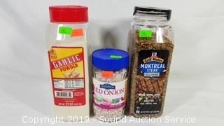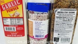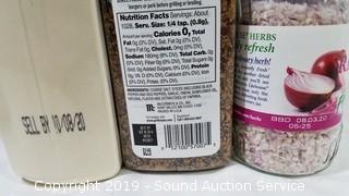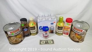 Item Description: Includes a 6 pack of 16oz squeeze bottles, 2 olive garden Italian dressing best by June 07, 2019, McCormick 29oz Montreal Steak Season best by September 10, 22oz Garlic Powder best by October 08, 2020, 1.13oz red onion best by August 03, 2020 (all of the seasonings have damaged lids, all are still sealed), (2) 6lb sausage gravy best by August 2020.