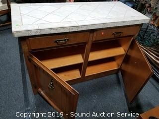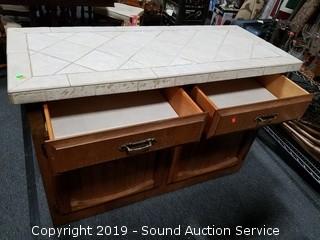 Item Description: 2 drawers and lower cabinet. Appears to be solid wood construction. Approx. 33" H x 49-1/2" x 20-1/2".