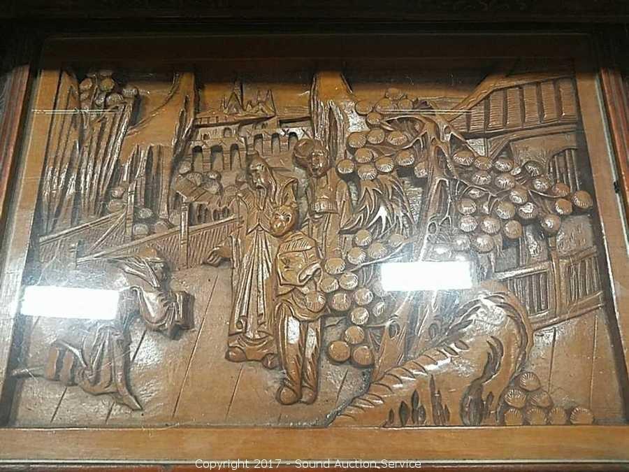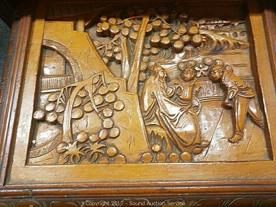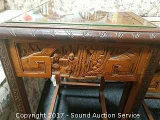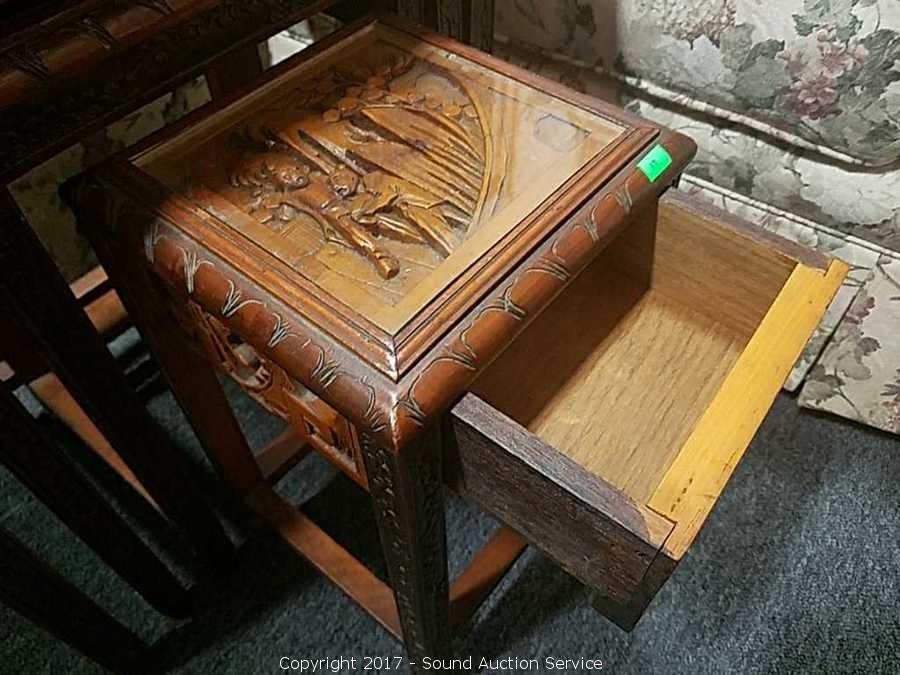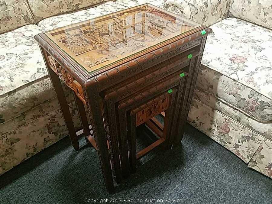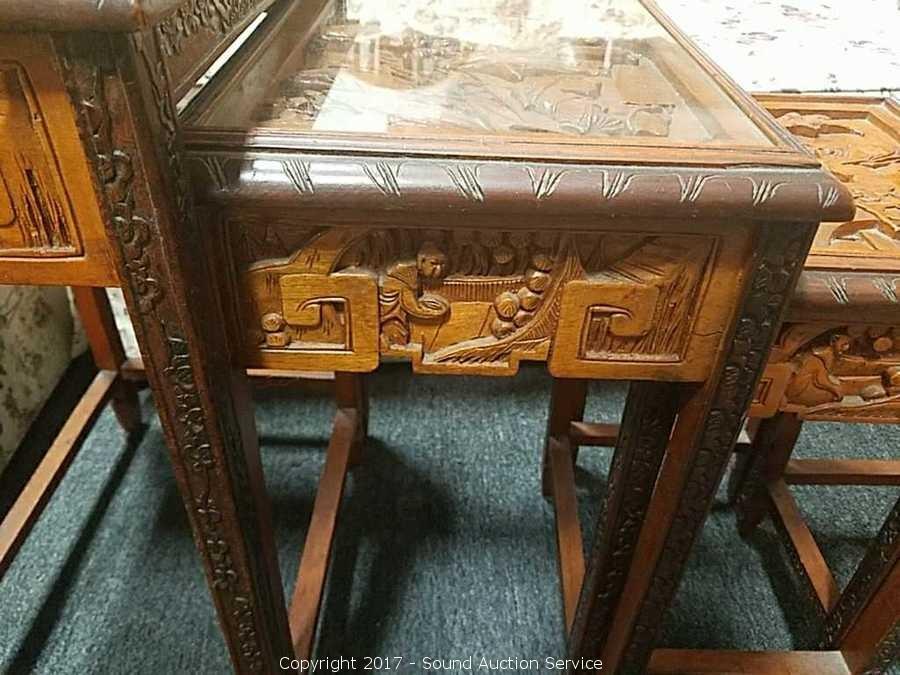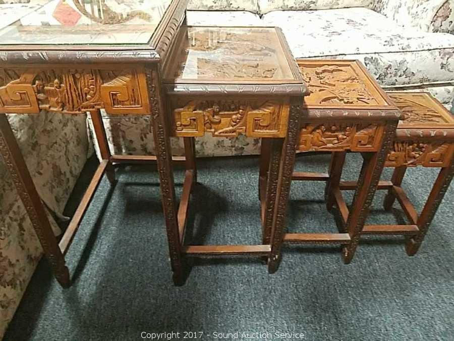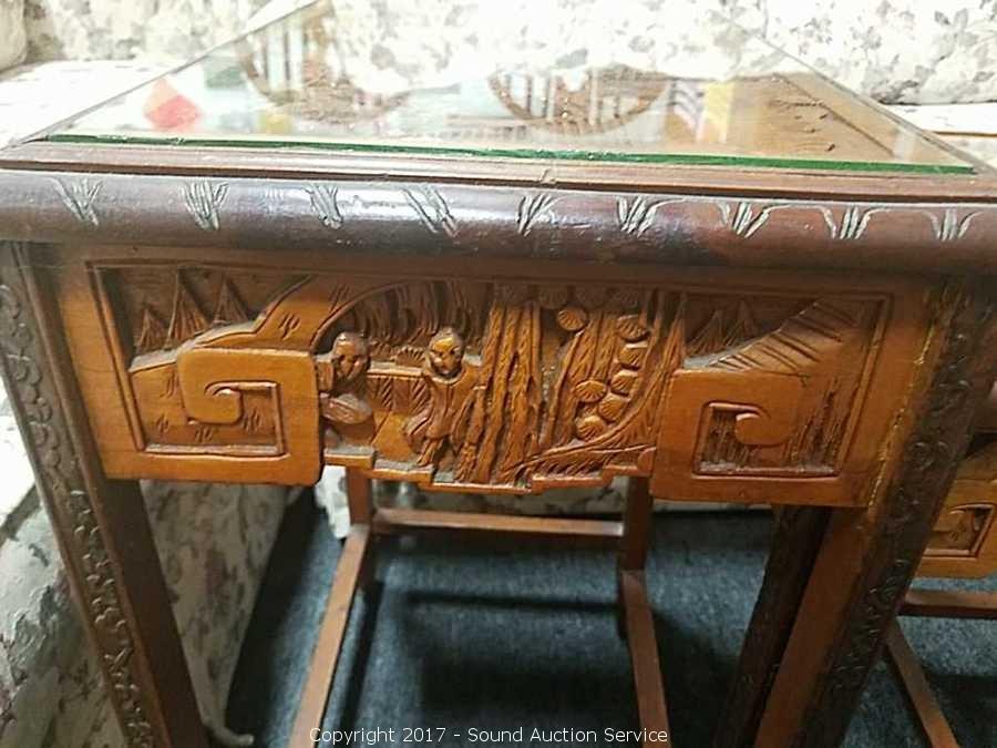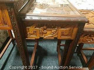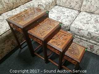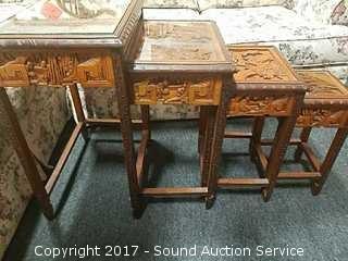 Lot #0043: 4 Antique Asian Style Hand Carved Nesting Tables