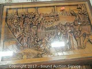 This is magnificent all over roughly 100 years old, all hand crafted and beautifully carved from Teak & Peach wood. Biggest is approx. 25" x 20" x 14". Smallest is approx. 17" x 10" square. The biggest, 2nd to biggest, and the smallest tables have glass.