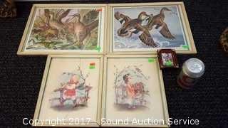 Includes: "Gadwall" & "Clapper Rail" by Charles De Feo from the copyright collection of the house of Seagram (Approx. 14" x 11"), "Marion Bradford Burgess" #1130 & #1131 prints (Approx. 11" x 9") & small hummel like print.