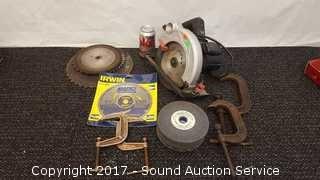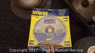 Includes: Irwin 7-1/4" blades, C clamps, and more. 7-1/4" X 5/8" Round Arbor Blade.