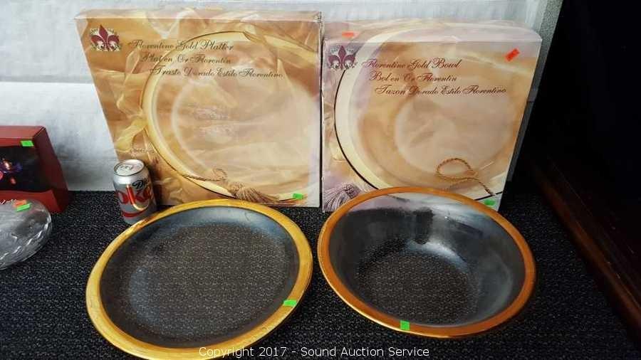 Lot #0089: Handmade Italian Florentine Gold Platter & Bowl