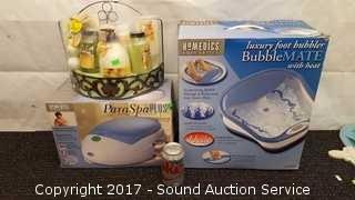 Lot #0067: Homedics Foot Bubbler, ParaSpa(NIB) & Bath Set