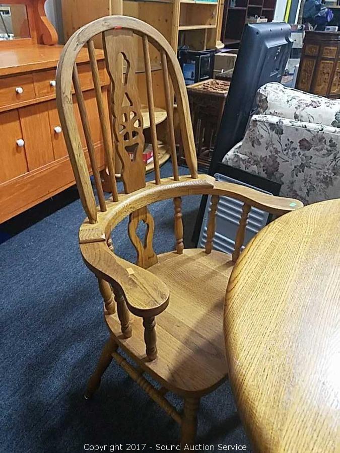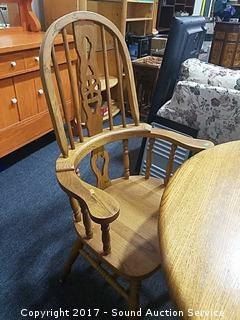 Windsor back Chairs, (2) captain's chairs. Approx. 29" tall, 73" wide (with both leaves) and 41" deep. Each leaf is 16".