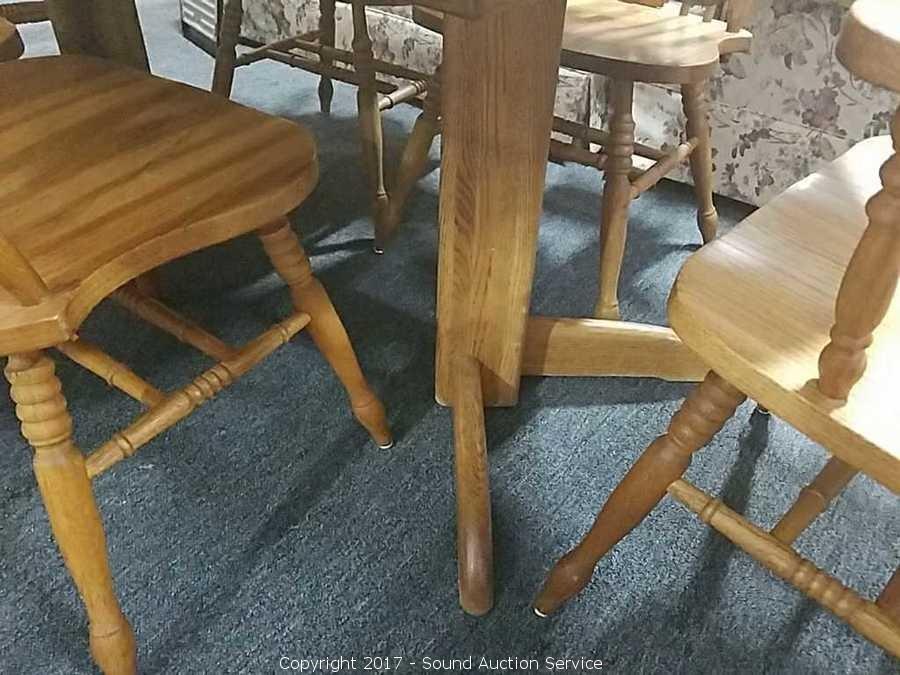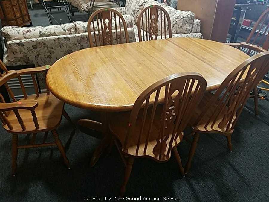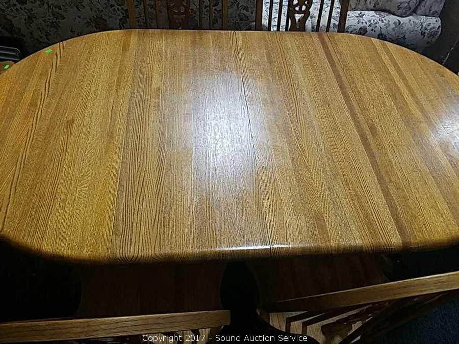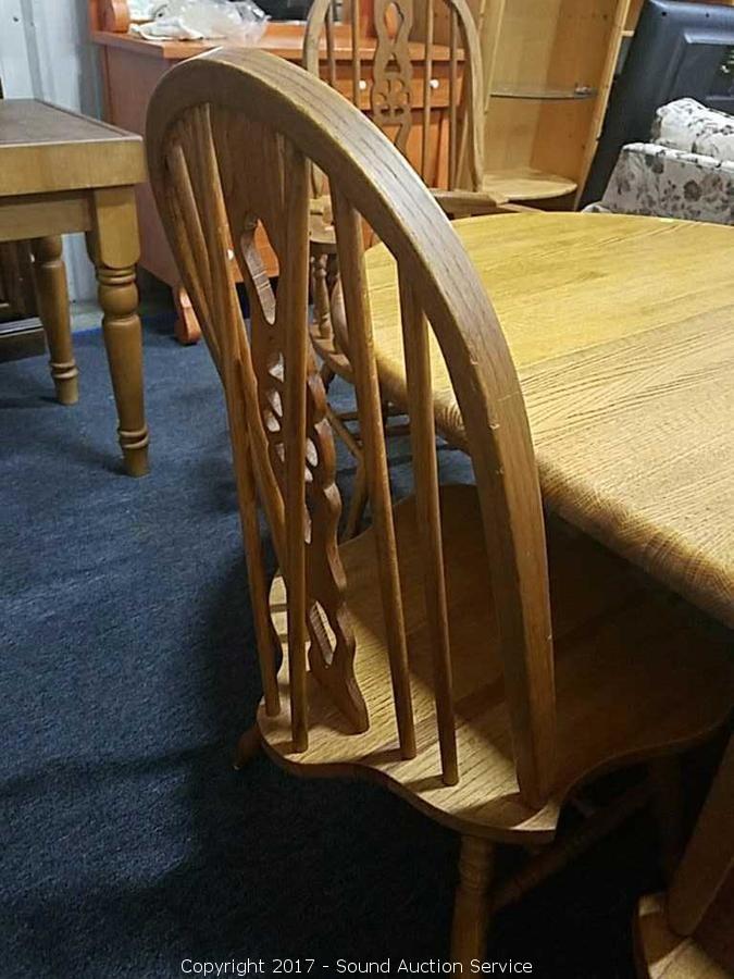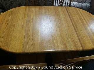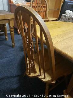 Lot #0050: Solid Oak Dining Set W/ (6) Chairs & (2) Leaves
