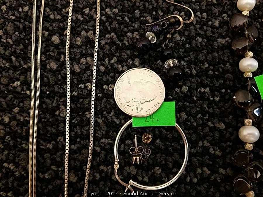 Includes (3) Necklaces & (2) Pairs of Earrings & Single Hoop Earring.