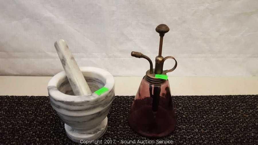 Lot #0199: Vtg. Perfume Spray Bottle & Marble Mortar & Pestle