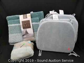 Lot #0396: 2 Bath Rugs, 2 Hand Towels & 4 Seat Cushions