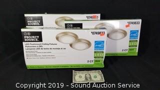 Lot #0154: 3-2pk LED Flushmount Ceiling Light Fixtures