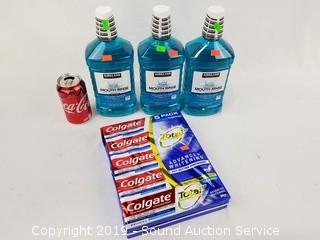 Lot #0135: 3 Bottles Mouthwash & 5pk Colgate Toothpaste