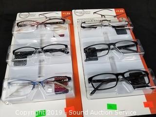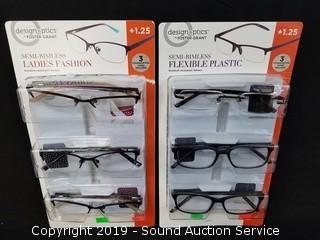 Lot #0296: 6 Pairs Design Optics +1.25 Reading Glasses