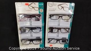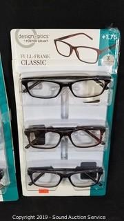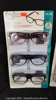Lot #0320: 6 Pairs Design Optics +1.75 Reading Glasses