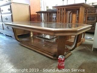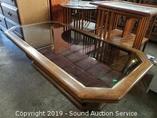 Lot #0432: Oak Finish Beveled Glass Top Coffee Table