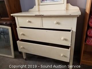 Lot #0003: Vtg. 4-Drawer Dresser w/Beveled Mirror Topper